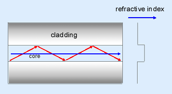 光纖由薄的低損耗玻璃線組成,其中心或核心區域的折射率略高于其周圍區域或包層。